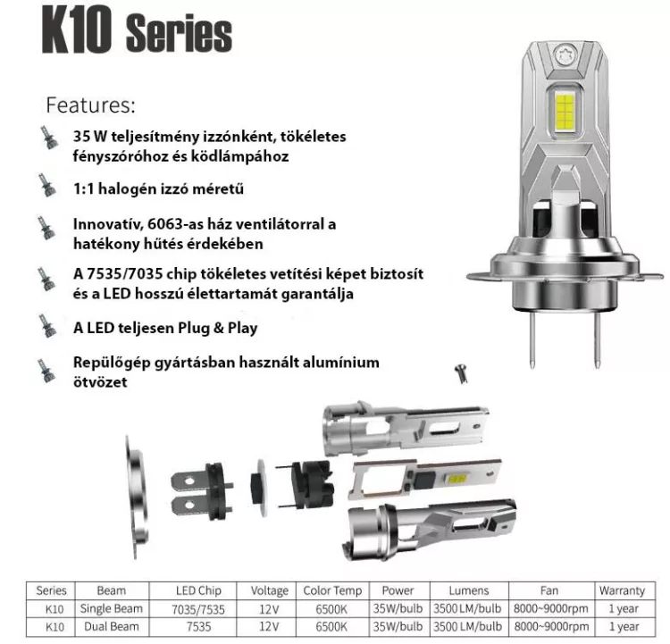 Szerelés: Semmilyen átalakítást nem igényel az autó. Használja úgy, mint a hagyományos halogén izzót 1/1.
