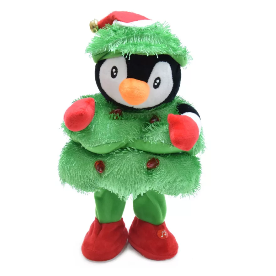 Az aranyos, karácsonyfának öltözött figura énekel, táncol, és még világít is, miközben puha plüss borítású. Egyaránt szórakoztató lehet kisebbeknek és nagyobbaknak is. A figura működéséhez 3 db AA elemre van szükség (nem tartozék).
